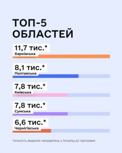 З моменту залучення до програми людей пенсійного віку участь у СКР взяли 537 осіб віком 60–70 років. Найбільше – у Запорізькій (92), Чернігівській (86), Харківській (75) та Сумській (71) областях.