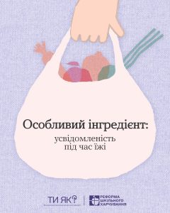Адже усвідомленість добре поєднується з усіма сферами нашого життя і навіть із будь-якими стравами на столі. Дивись універсальний рецепт у каруселі від «Ти як?» та Команда реформи шкільного харчування , які дбають про корисну та смачну їжу для школярів і популяризують здорове харчування в Україні.