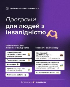 Комплекс підтримки людей з інвалідністю: працевлаштування, навчання, компенсації за облаштування інклюзивних робочих місць