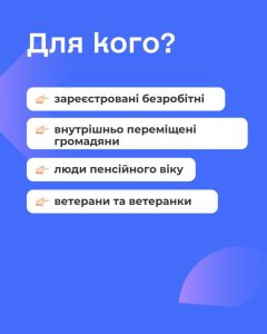 Детальніше – у найближчому центрі зайнятості або на сайті: dcz.gov.ua/people/socialwork