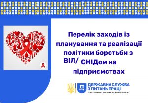 Перелік заходів із планування та реалізації політики боротьби з ВІЛ/СНІДом на підприємствах