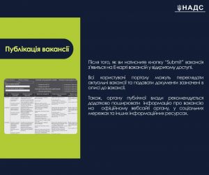 НАДС рекомендує органам публічної влади активно користуватися можливостями Е-Карти, щоб зробити процес інформування кандидатів про вакансій в органах публічної влади максимально прозорим, оперативним і зручним як для служб управління персоналом, так і для кандидатів.