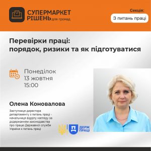 Спікерка: Олена Коновалова, заступниця директора департаменту з питань праці – начальниця відділу нагляду за додержанням законодавства про працю Державної служби з питань праці