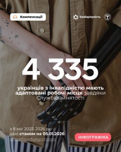 За час дії програми компенсації роботодавцям вартості облаштування інклюзивного робочого місця Державна служба зайнятості сплатила 317 млн гривень. Ці кошти з серпня 2023 року були виділені для 3,8 тис. працедавців та 4 335 працівників, з них 397 – із І групою інвалідності.