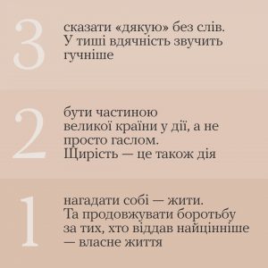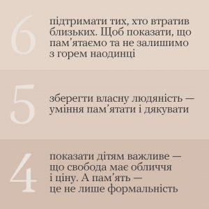 А ти зробиш одну маленьку та дуже цінну дію. Шануй себе і шануй тих, хто загинув.